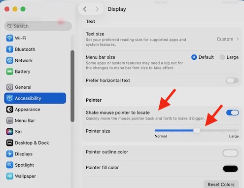Temporary - shake mouse back and forth or move finger rapidly on trackpad Permanent - Go to System Settings > Accessibility > Display > Pointer - use slider to enlarge Note: You can also change the Pointer colors