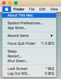 2. Go to the Apple icon at top of screen 3. Click 'AboutThis Mac'