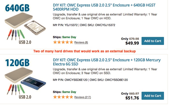 BACKUP Your HARD DRIVE -Step 2- ORDER 1. ORDER a new external Hard Drive and Enclosure 2. For example, go to OWC (Other World Computing) 3. Click on 'MY UPGRADES'