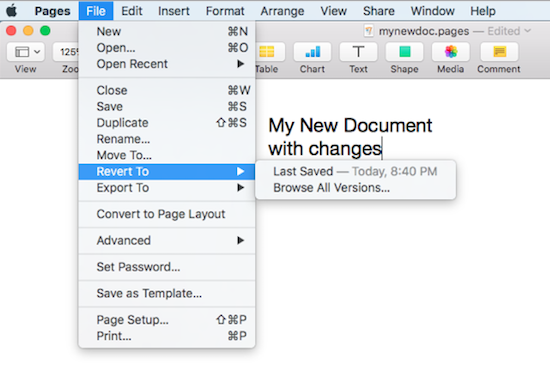 4. Click File> Revert>Last Saved (or Browse All Versions). Select version, click Restore, then Done. Read more about AUTOSAVE/REVERT in this LifeWire article